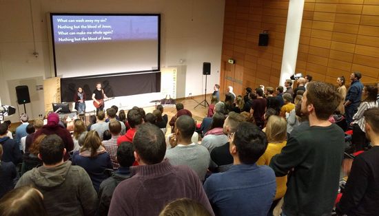After two years of searching, we have found a home for the meantime in a lecture theatre on Guy’s Campus of Kings College. We praise God for a space that we can sing in, that is conducive to listening, and doesn’t have resident rodents (like the last place)! Conveniently situated next to London Bridge station, and close to Willcox House, we are grateful to God that we have been able to run kids work and retain our meal together whilst having much more space in which to worship God and invite friends.